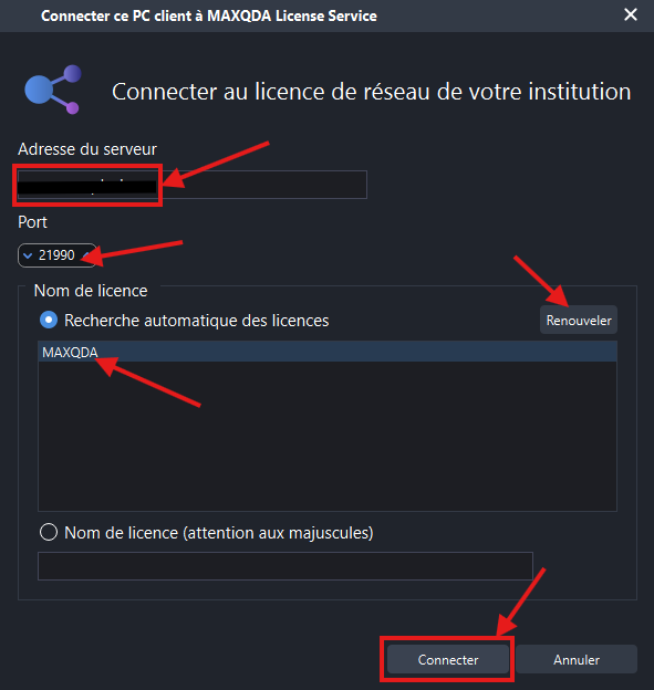 Die Lizenz ist auf einem Lizenzserver verfügbar. Die Serverinformationen befinden sich im Ordner unter \\common\software\Windows\MAXQDA in der Datei “license_server.txt“.